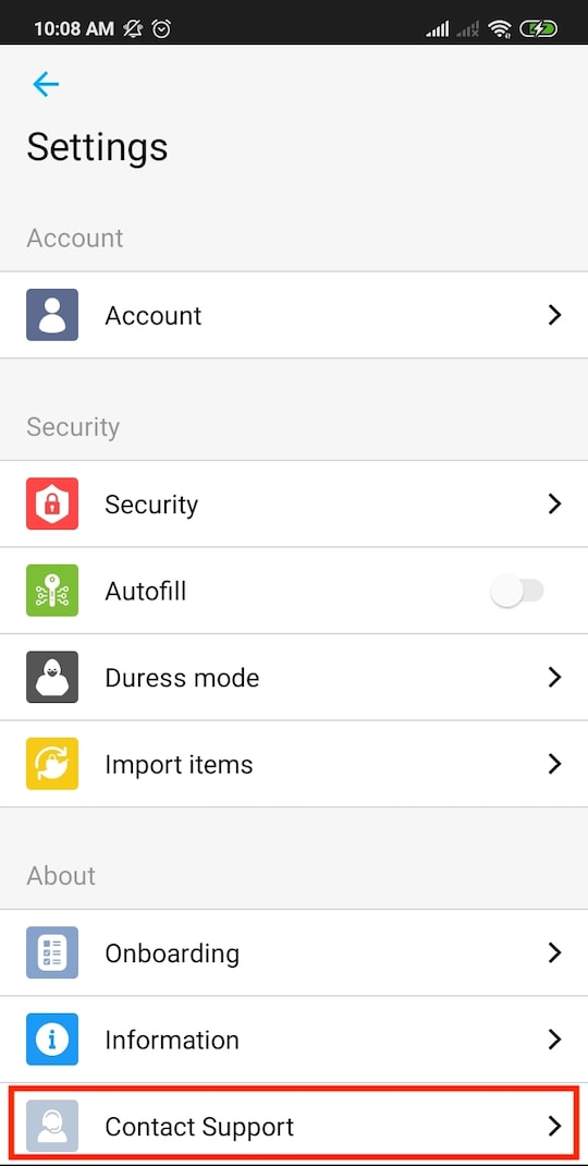 1. Go to the Settings tab. Scroll down to the About section and tap Contact Support.