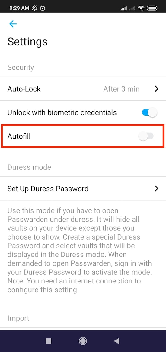 2. Turn on the slider button right to the Autofill section