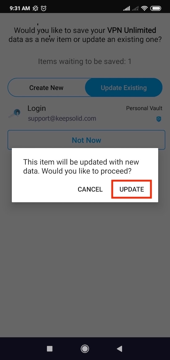 Note: VPN Unlimited app is taken as an example. Passwarden Autofill feature works fluently with any application installed on your Android device.