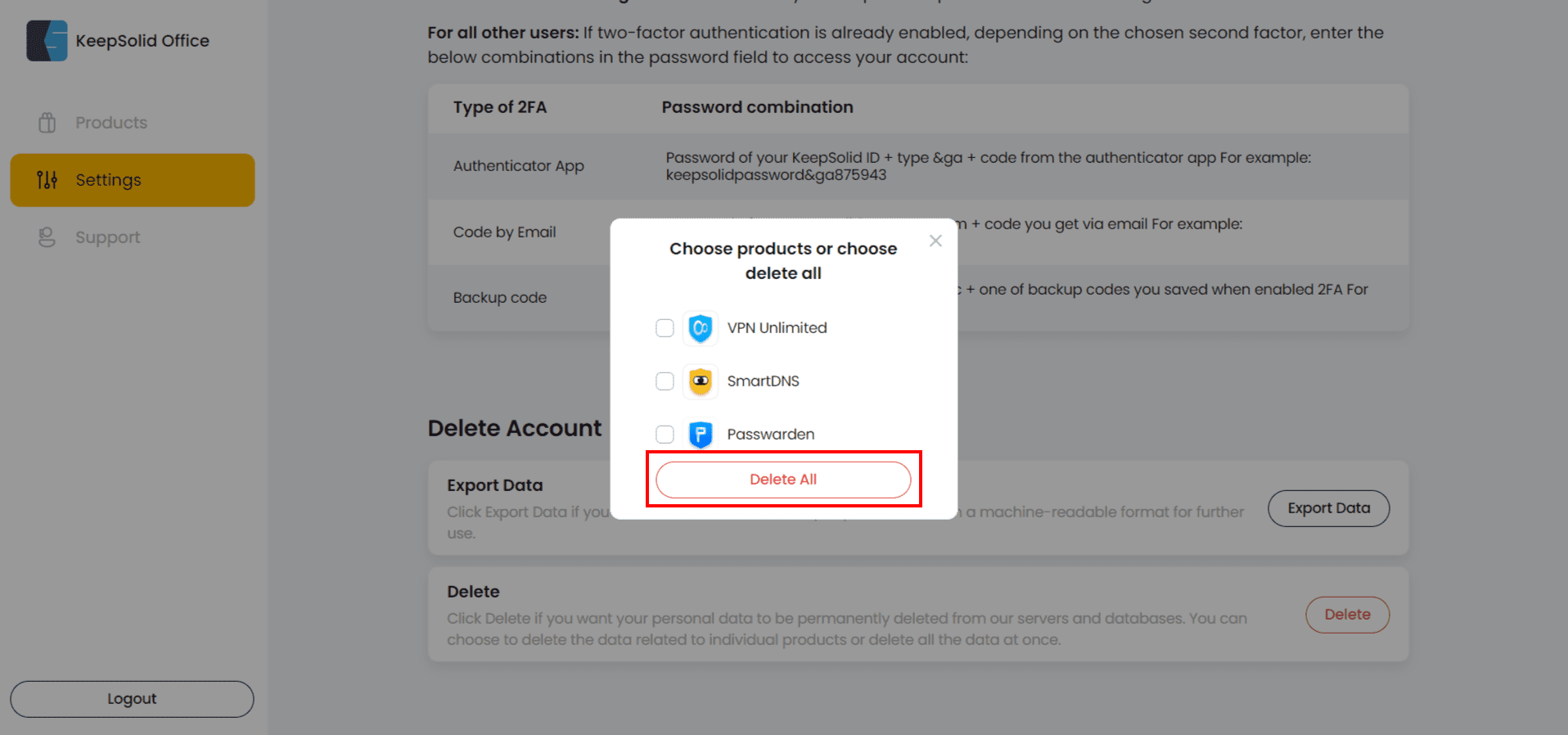 4. If you want to delete your KeepSolid account and all your personal data, press Delete All.