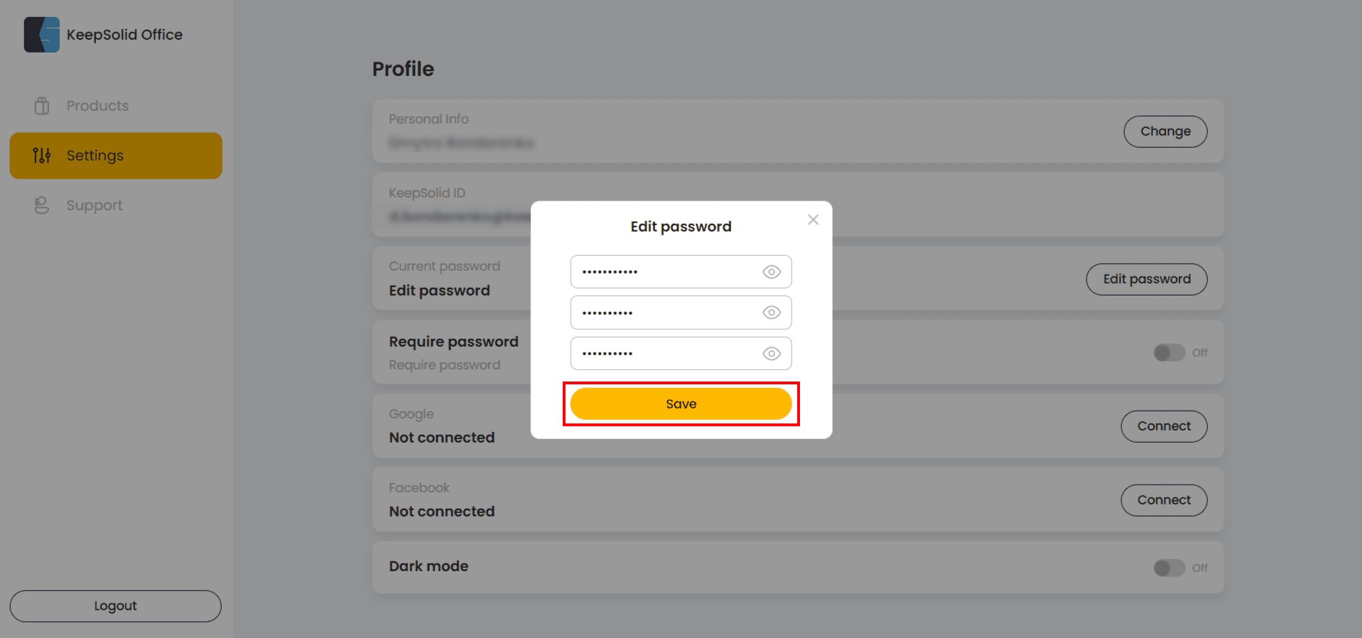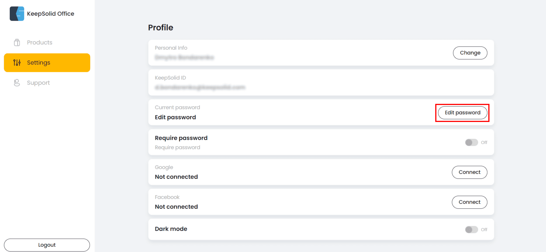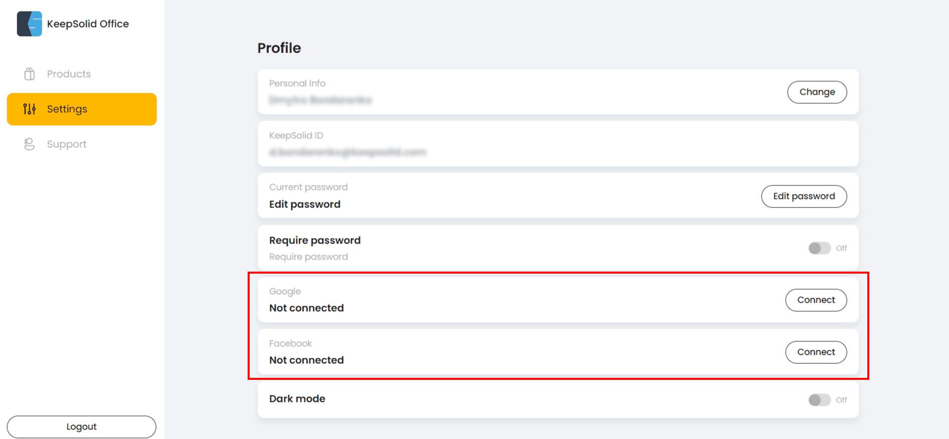 First of all, open KeepSolid User Office and sign in using your KeepSolid ID, Apple ID, or Facebook / Google accounts.