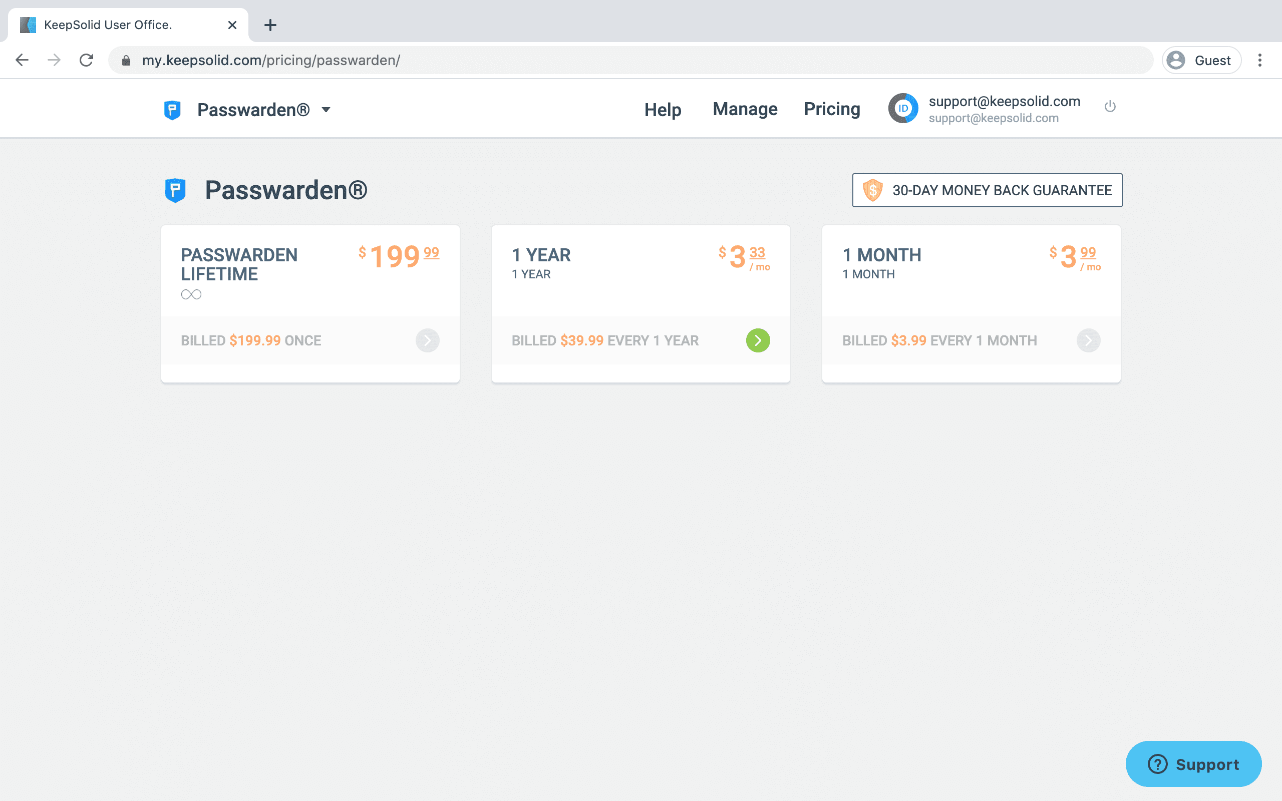 1. Press Manage next to your Passwarden subscription.