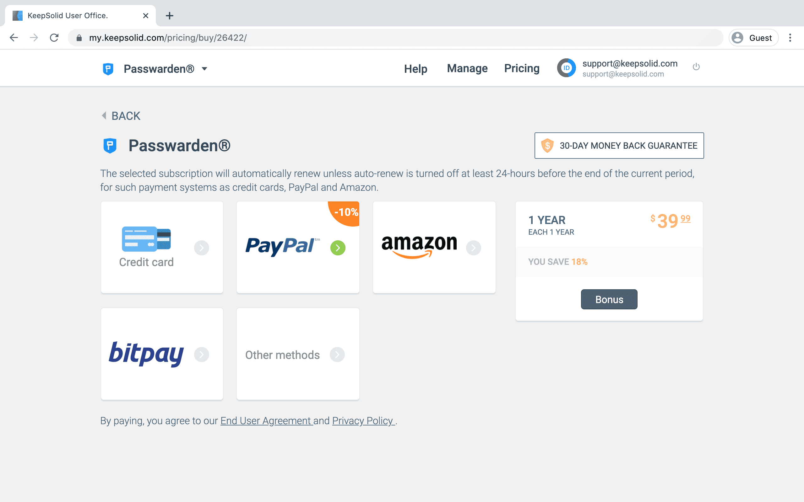 Great! Confirm your payment and enjoy our safe password manager with no limitations.